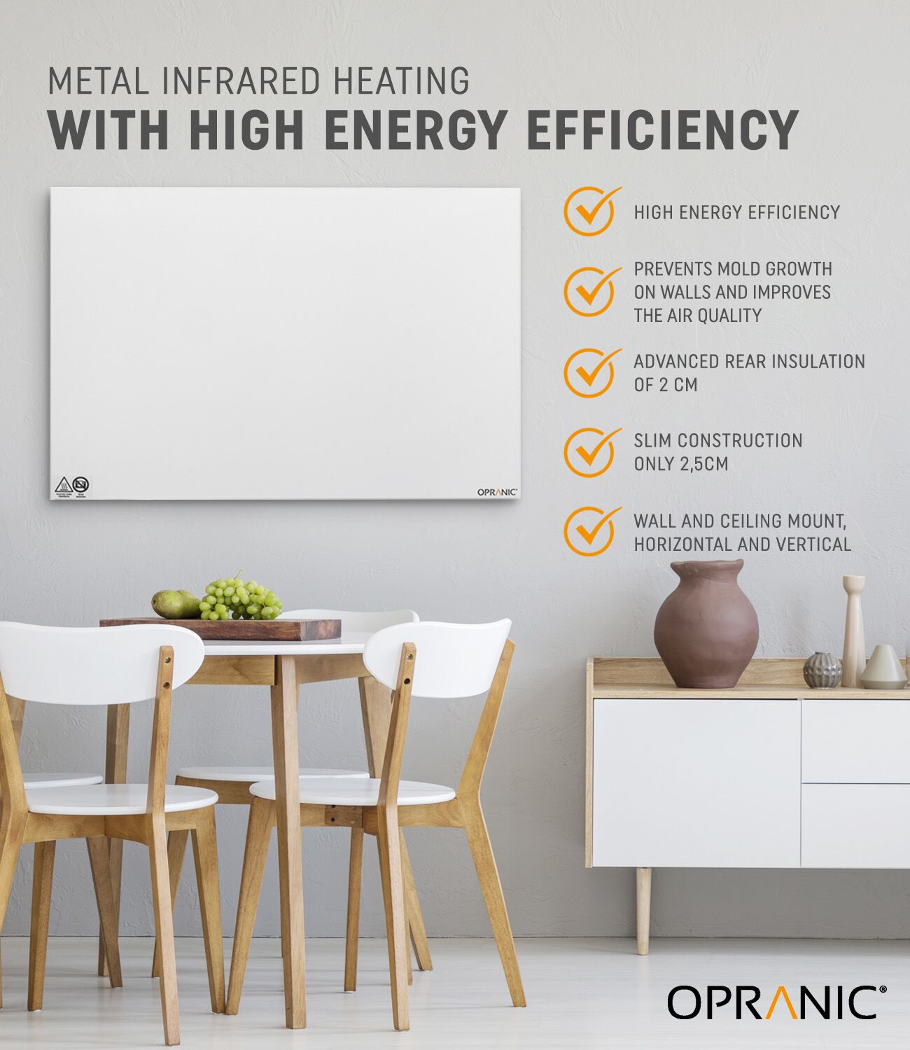 Nuestros Radiadores Infrarrojos están diseñados para una conversión óptima de la energía, lo que garantiza que una mayor cantidad de energía eléctrica se convierta directamente en calor. Superan las normas del sector, proporcionando una calefacción eficiente tanto para espacios pequeños como grandes. Los Radiadores Infrarrojos OPRANIC proporcionan una distribución uniforme del calor con una pérdida mínima de energía, lo que se traduce en un ahorro significativo en costes de calefacción.