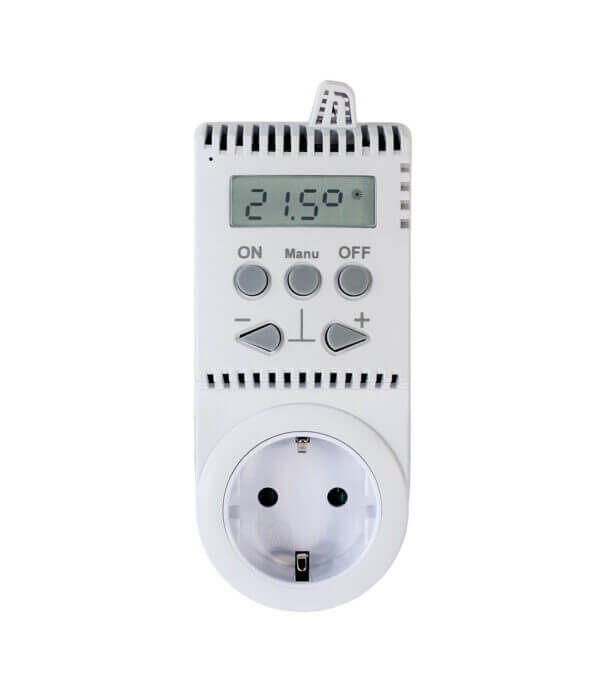 Termostato para la toma de corriente. Controla sin esfuerzo tu panel calefactor por infrarrojos Opranic conectando el termostato a un enchufe. Establezca un programa de calefacción para mantener automáticamente la temperatura ambiente deseada. Experimente la máxima eficiencia de calefacción y habitaciones confortables con facilidad. Actualice su calefacción hoy mismo