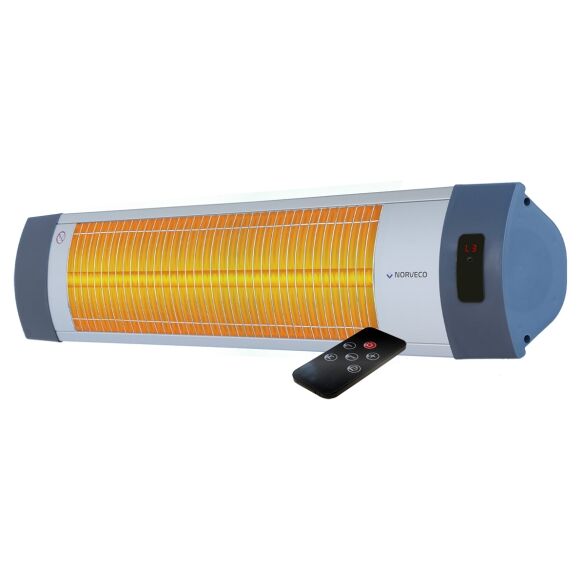 NORVECO, STAR Calentador de Patio portátil o de pared 1800W con soporte, mando a distancia, IP44
