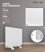 La serie OPRANIC Híbrida P6 está disponible en 550 vatios y 900 vatios. La eficiencia energética se consigue mediante un cableado de hilo de silicio con resistencia y nanotecnología de desarrollo propio. Las resistencias térmicas se extienden por completo hasta los bordes del calentador, asegurando una distribución uniforme del calor sin puntos calientes. La serie híbrida de OPRANIC convierte aproximadamente el 99% de la energía eléctrica en salida térmica, proporcionando la máxima eficiencia energética, con una capacidad de calor en la superficie de hasta 90 – 110°C.