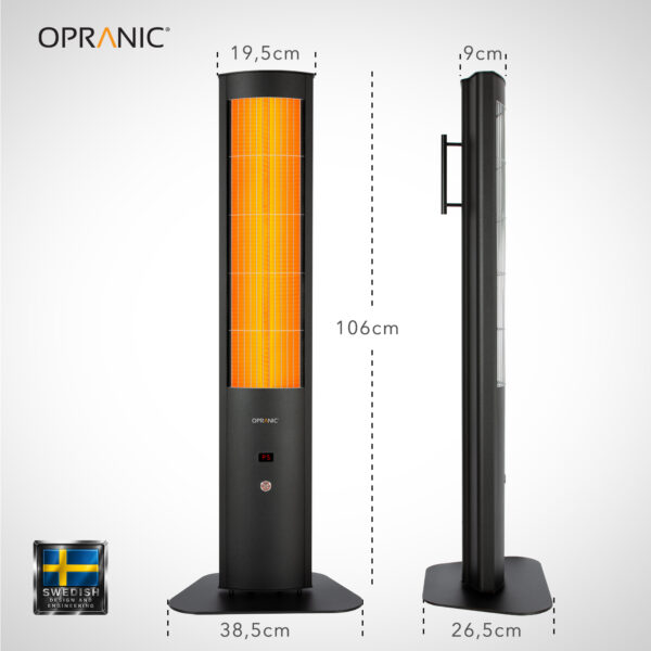 OPRANIC THOR S70R Draagbare Patioheater 2300W, IR-X Carbon Zwart, IP65, Afstandsbediening, Timer